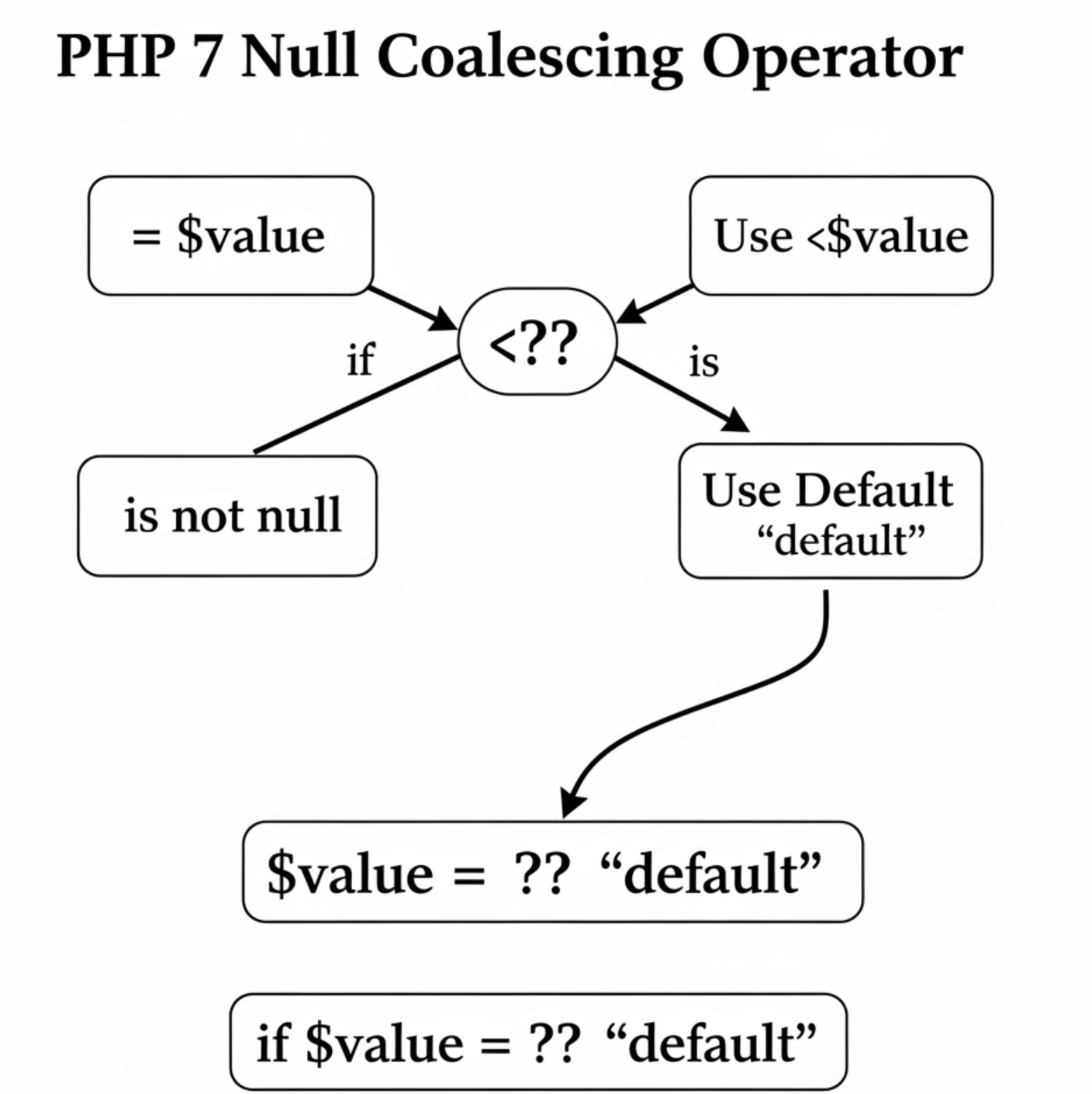 PHP 7부터는 #널_병합_연산자 (??)가 도입되어, #변수 가 설정되어 있는지 또는 #NULL 인지를 더 간결하게 확인할 수 있습니다. 이는 #삼항_연산자 의 축약형으로 볼 수 있습니다.