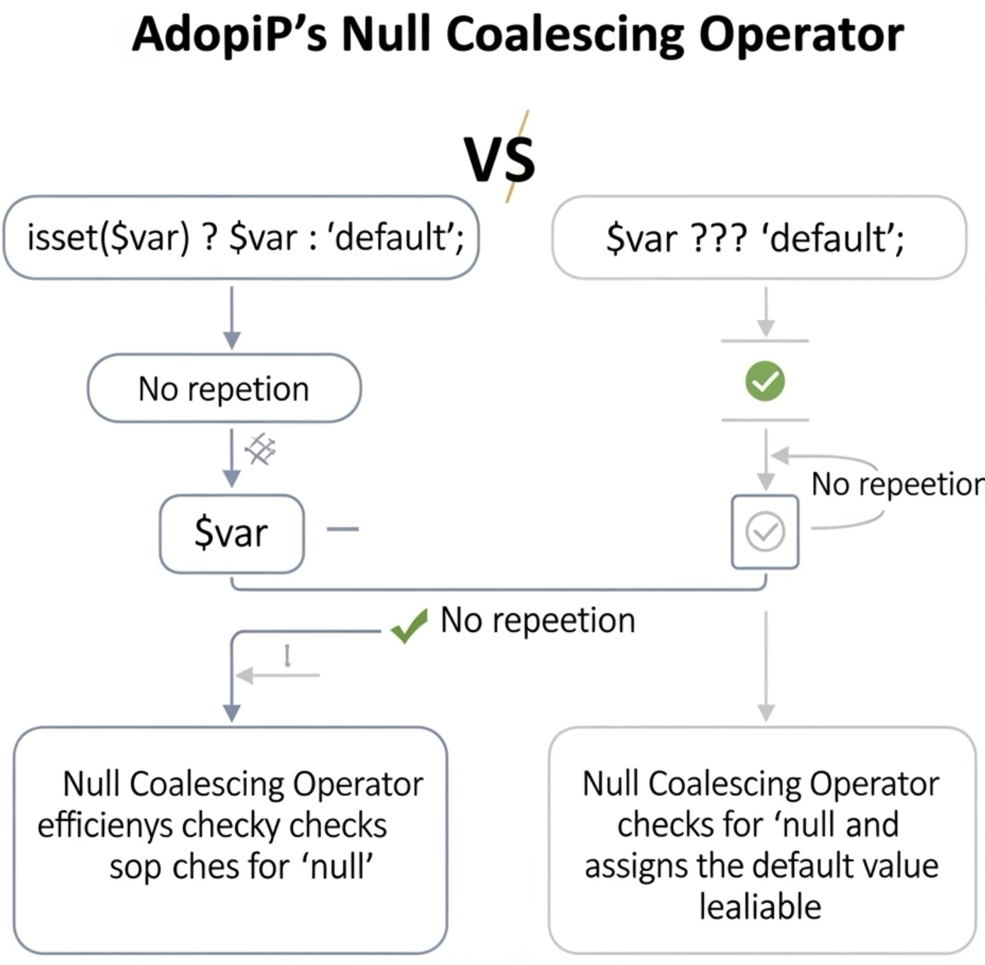 주목할 점은 isset() 함수가 #변수 의 존재 여부와 #NULL 이 아닌지 여부를 모두 확인한다는 것입니다. #Null_병합_연산자 역시 이와 동일한 방식으로 작동하며, 훨씬 더 간결한 문법을 제공합니다.