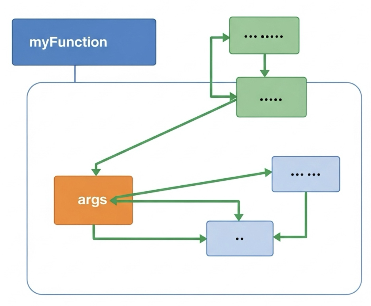매개변수 이름 앞에 ...를 붙입니다. 이렇게 하면 전달된 모든 인수가 해당 매개변수 이름의 배열로 함수 내에서 접근 가능합니다.