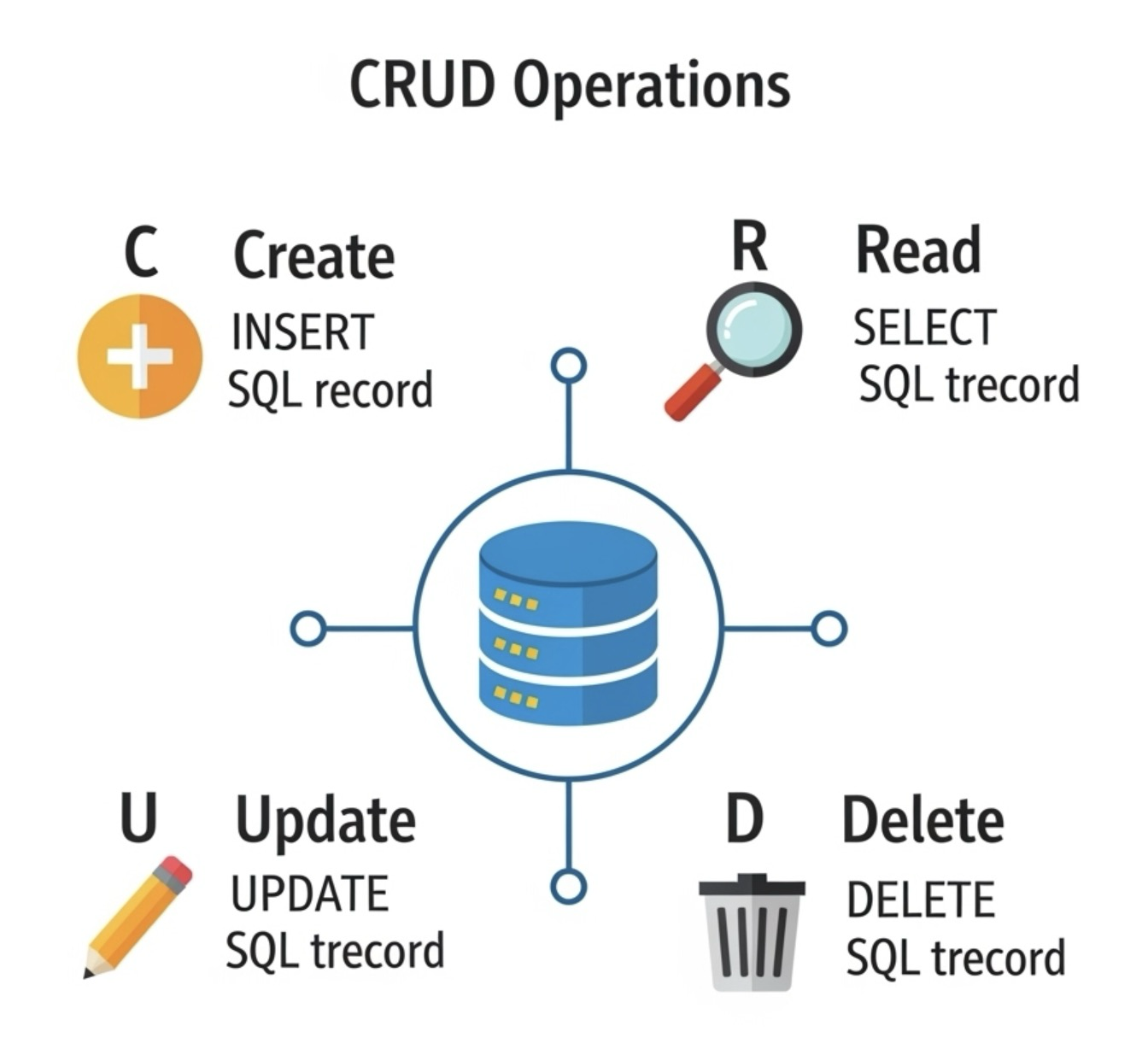 이제 데이터를 다루는 가장 기본적인 SQL 명령어들인 #SELECT, #INSERT, #UPDATE, #DELETE에 대해 알아보겠습니다. 이 네 가지 명령어는 #CRUD(Create, Read, Update, Delete) 작업의 핵심을 이룹니다.