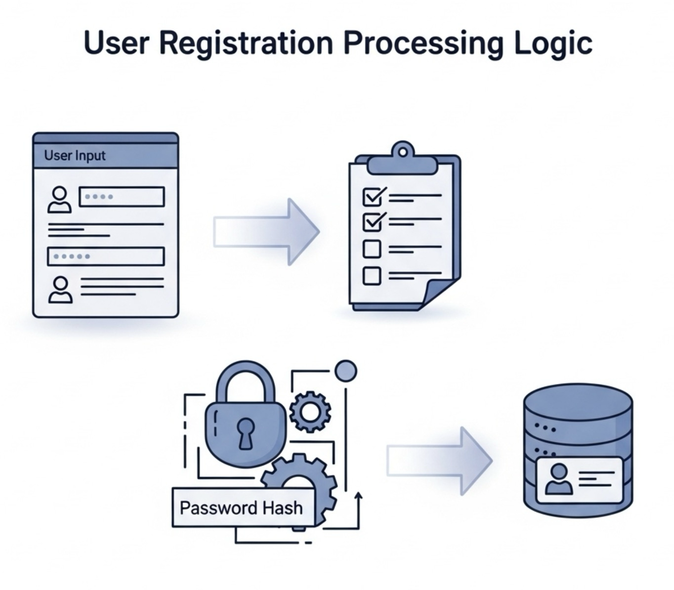 register_process.php 파일에서 실제 회원가입 처리 로직을 구현합니다. 이 부분에서는 다음 단계를 거칩니다: