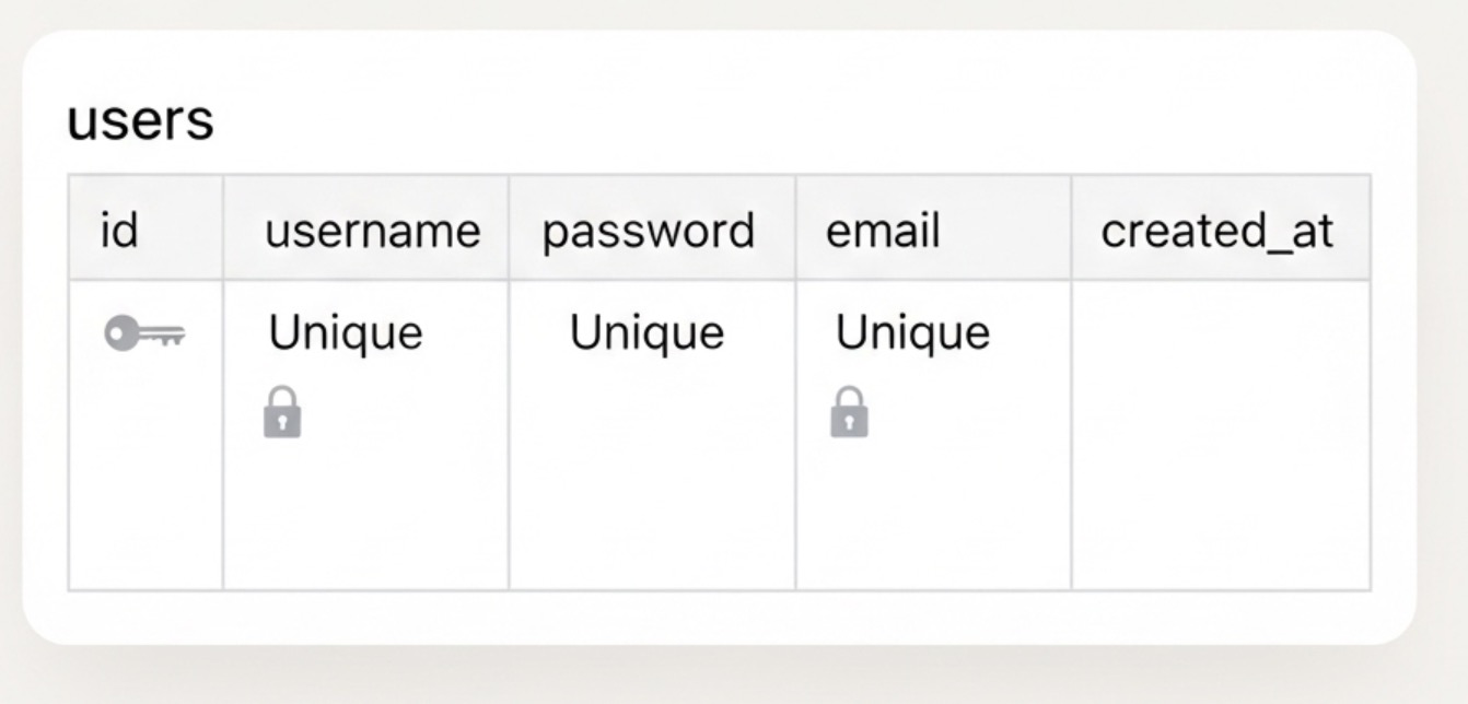 - email: 사용자 이메일을 저장합니다. 역시 UNIQUE 제약 조건을 적용할 수 있습니다.