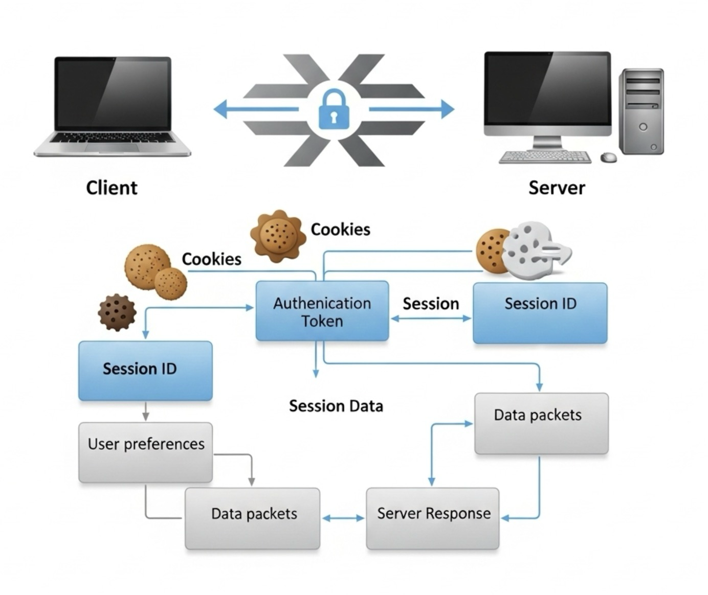 #세션(Session)은 웹 애플리케이션에서 #사용자의 #상태 정보를 #서버에 유지하기 위한 중요한 기술입니다. #HTTP는 기본적으로 #무상태(stateless) 프로토콜이기 때문에, 요청과 응답이 끝나면 #사용자에 대한 어떤 정보도 기억하지 못해요. 이러한 한계를 극복하고 #로그인 상태 유지, 장바구니 정보, 사용자 설정 등 특정 #사용자와 관련된 데이터를 #서버에 저장하고 관리하는 것이 바로 #세션입니다.