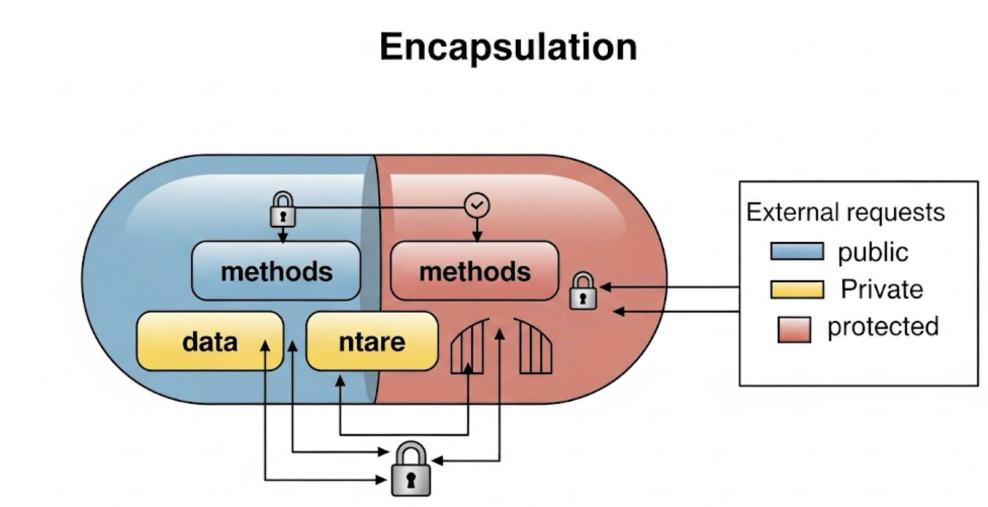 #PHP #객체_지향_프로그래밍(OOP)에서 #캡슐화는 클래스 내부의 #데이터(속성)와 #메서드를 하나로 묶고, 외부로부터 직접적인 접근을 제한하여 #객체의 #무결성을 보호하는 중요한 개념입니다. 이를 통해 개발자는 코드의 #유지보수성과 #재사용성을 높일 수 있습니다. PHP에서는 접근 제어자 #public, #private, #protected를 사용하여 캡슐화를 구현합니다.