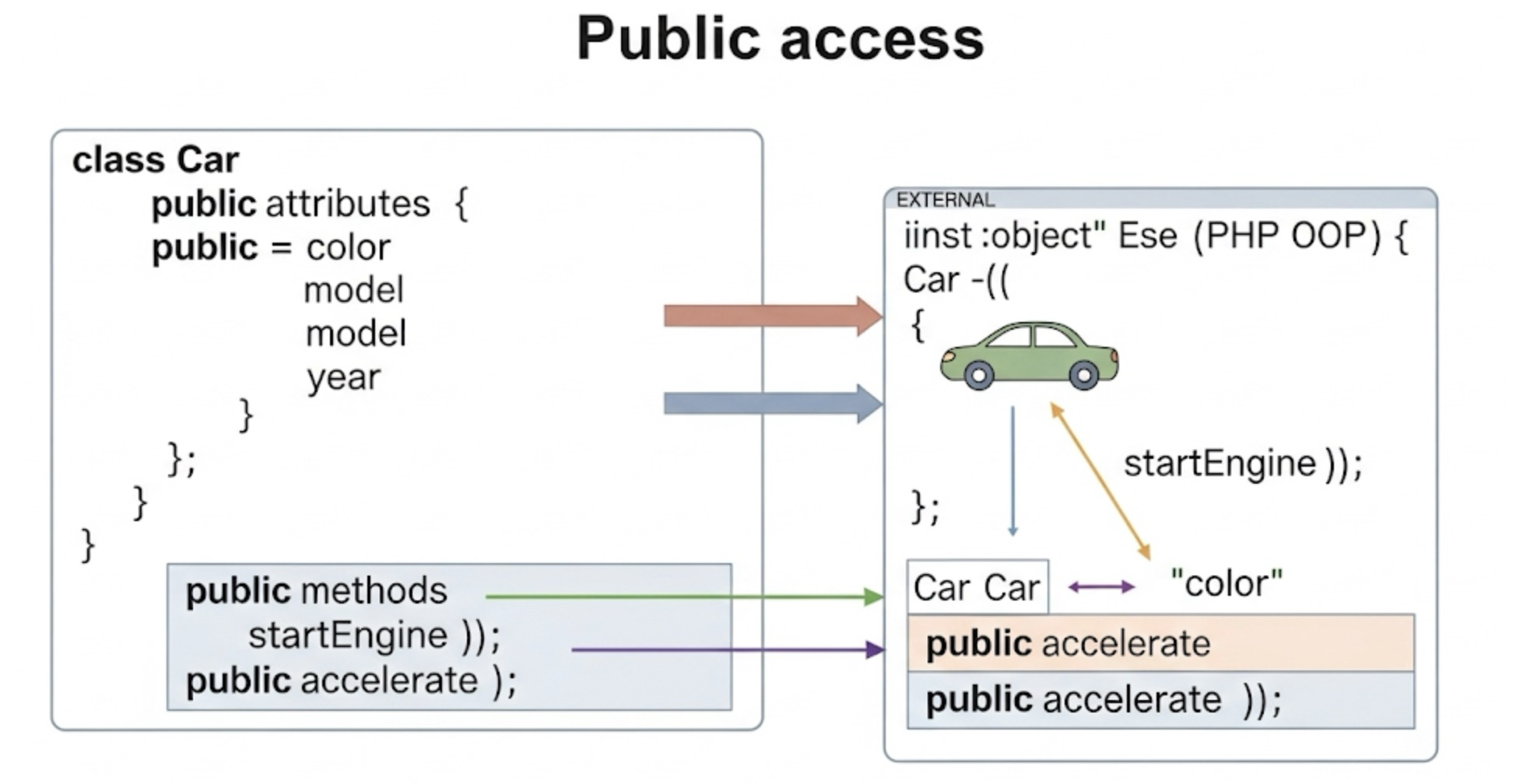 echo $car->getInfo(); // public 메서드를 통해 정보 접근