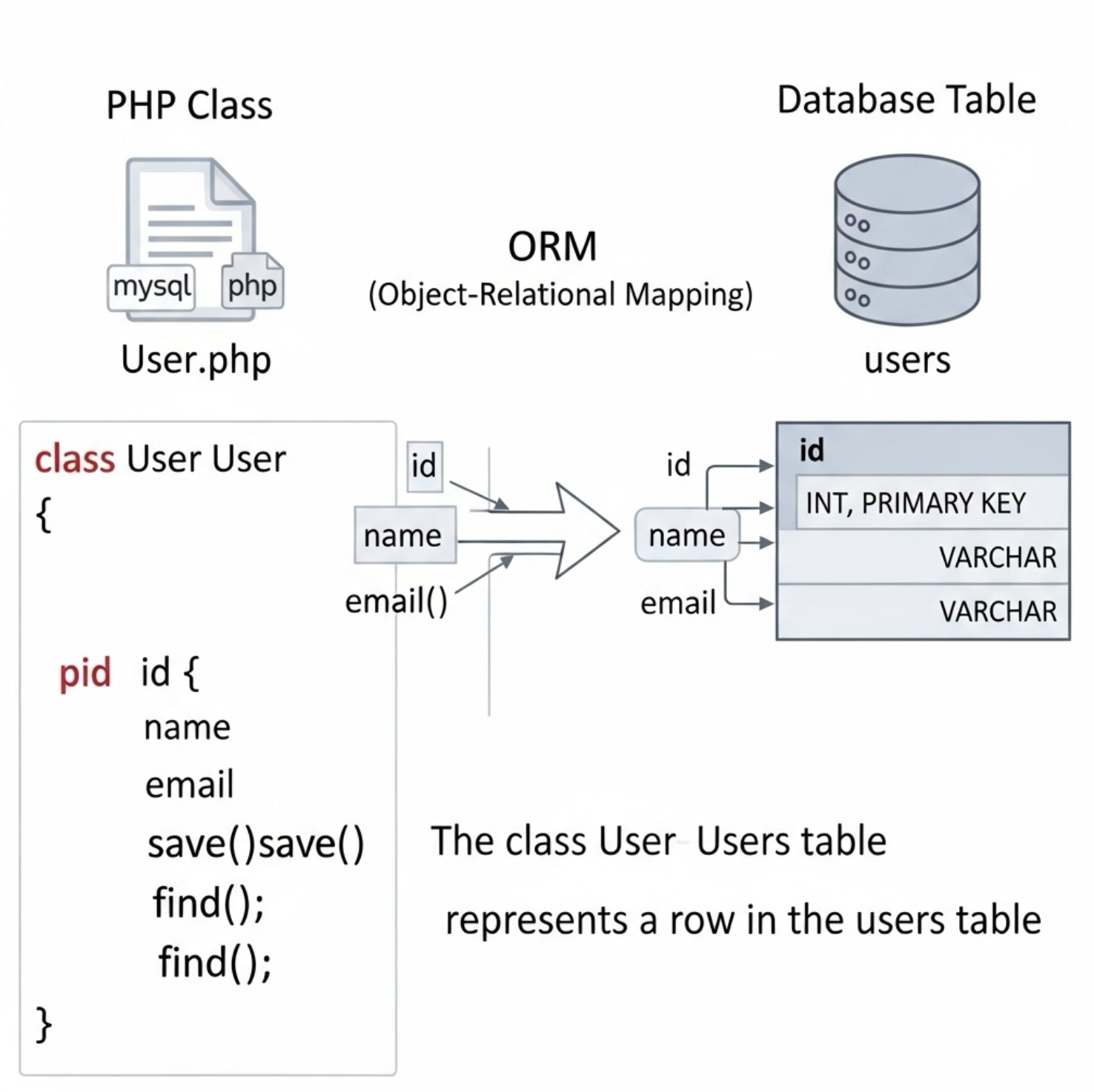 // 따라서 User 클래스는 'users' 테이블과 연결돼.