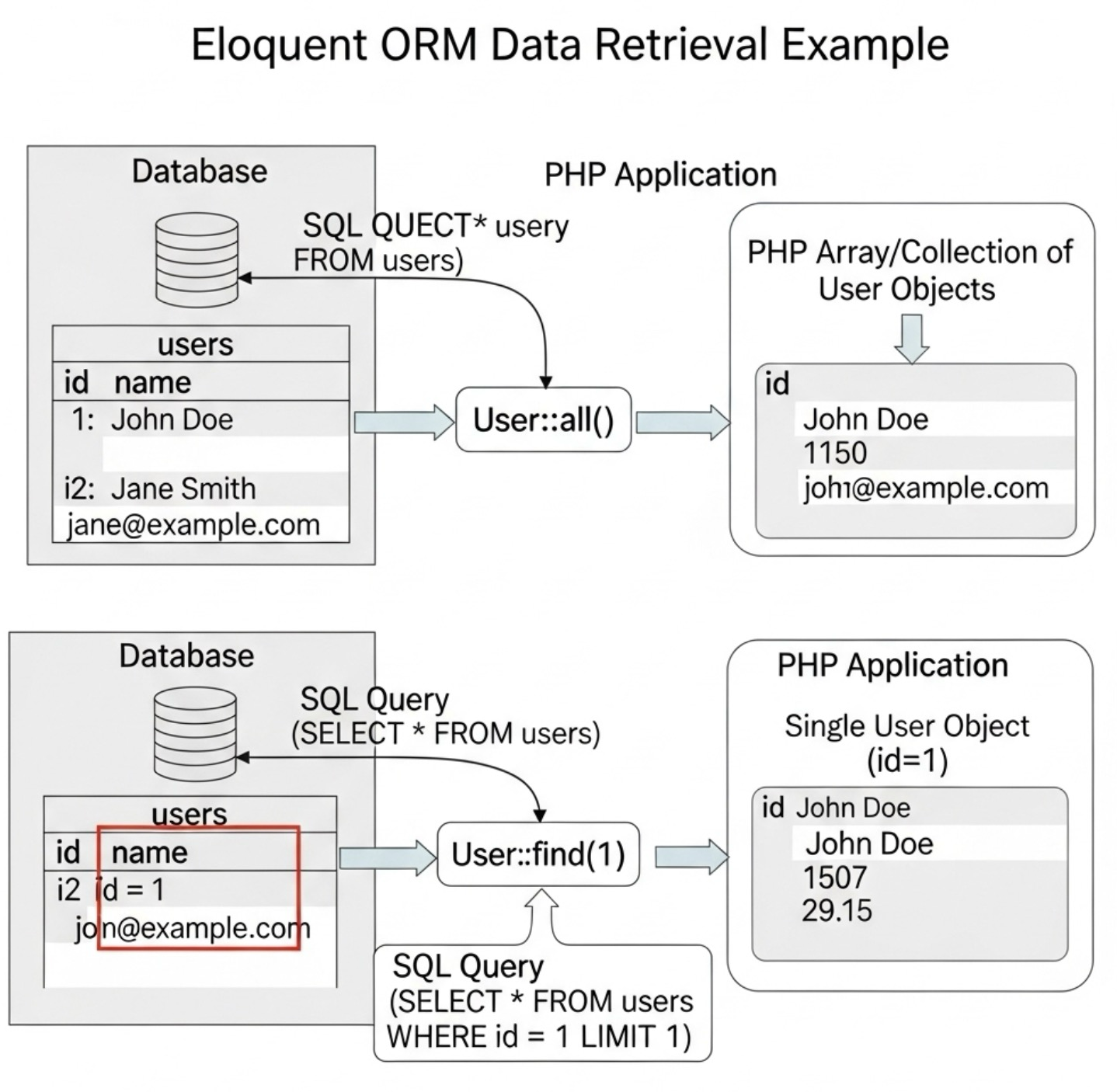 #Eloquent는 all()이나 find() 같은 직관적인 #메서드를 제공해서 #SQL SELECT #쿼리를 쉽게 작성할 수 있어.