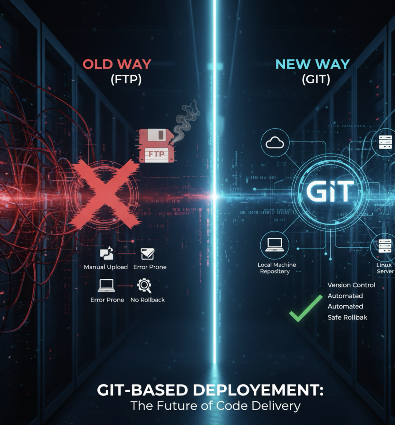 과거에는 #FTP(File Transfer Protocol)를 사용하여 로컬에서 서버로 코드를 수동으로 업로드하는 방식이 흔했지만, 이는 #오류_발생_가능성 이 높고 #롤백(Rollback) 이 어렵다는 치명적인 단점이 있습니다. 현대의 #PHP_배포 환경에서는 Git을 이용한 배포가 #표준 으로 자리 잡았습니다. Git을 사용하면 코드를 버전별로 관리할 수 있고, 안정성과 자동화가 대폭 향상됩니다. 🚀