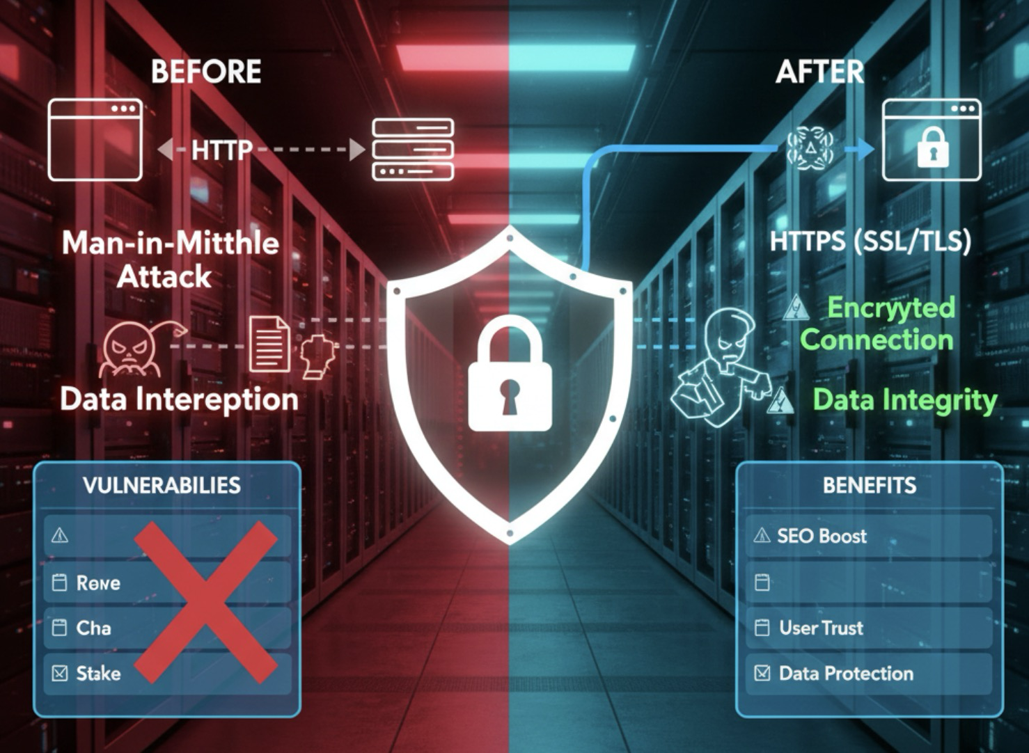 현대의 #웹_사이트 운영에서 #HTTPS (Hypertext Transfer Protocol Secure)는 선택이 아닌 필수입니다. HTTPS는 #SSL (Secure Sockets Layer) 또는 #TLS (Transport Layer Security) 프로토콜을 사용하여 클라이언트(사용자 브라우저)와 서버 간의 통신을 #암호화 합니다. 이를 통해 데이터 가로채기, 위변조, 도청 등의 공격으로부터 사용자의 정보를 보호하고, 웹사이트의 신뢰성을 확보합니다. 🔒