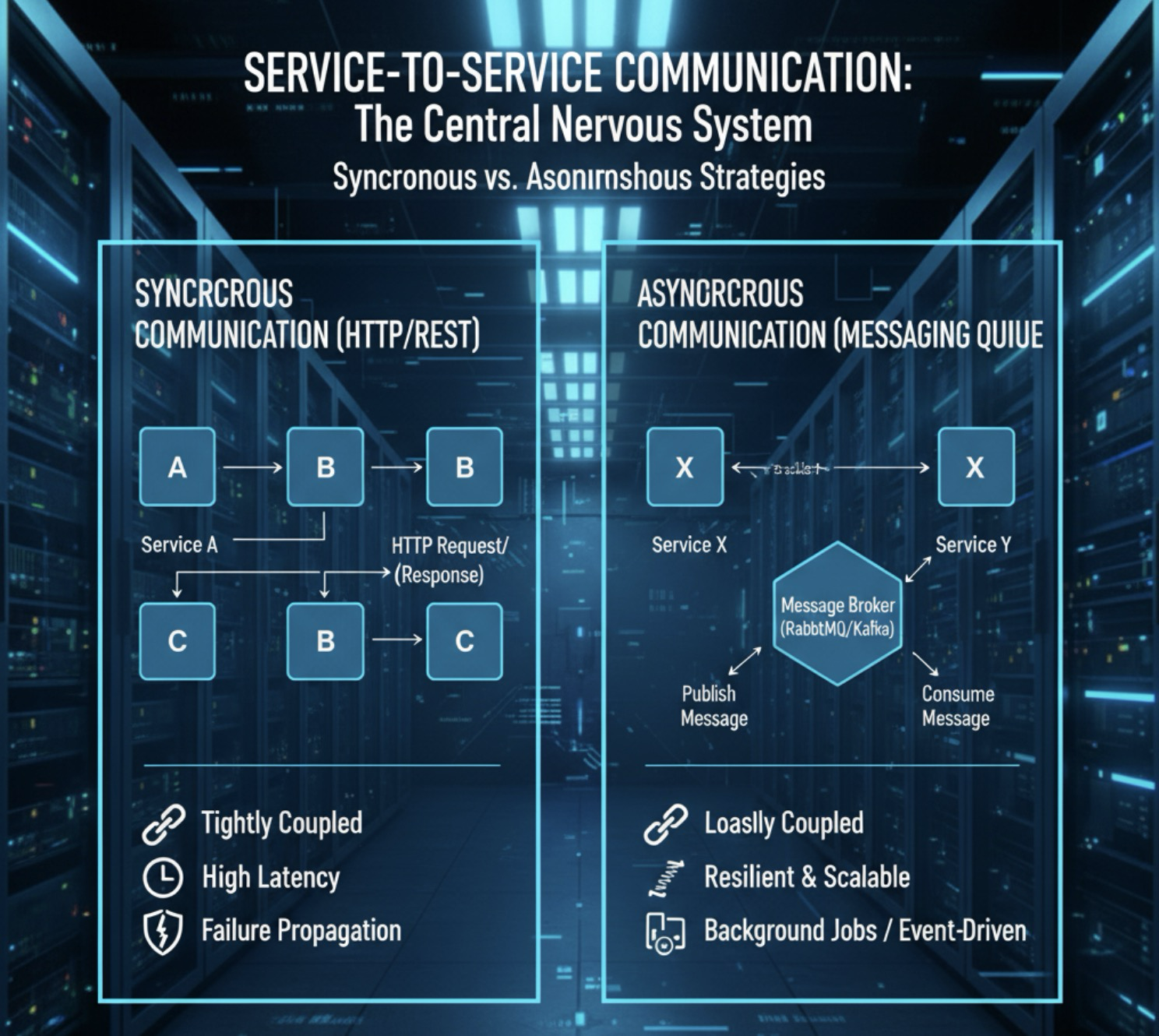 - 단점: 서비스 간 #결합도 가 높아지고, 응답을 기다리는 동안 #네트워크_지연 이 발생하며, 서비스 B에 문제가 생기면 서비스 A까지 영향을 미칩니다 (장애 전파).