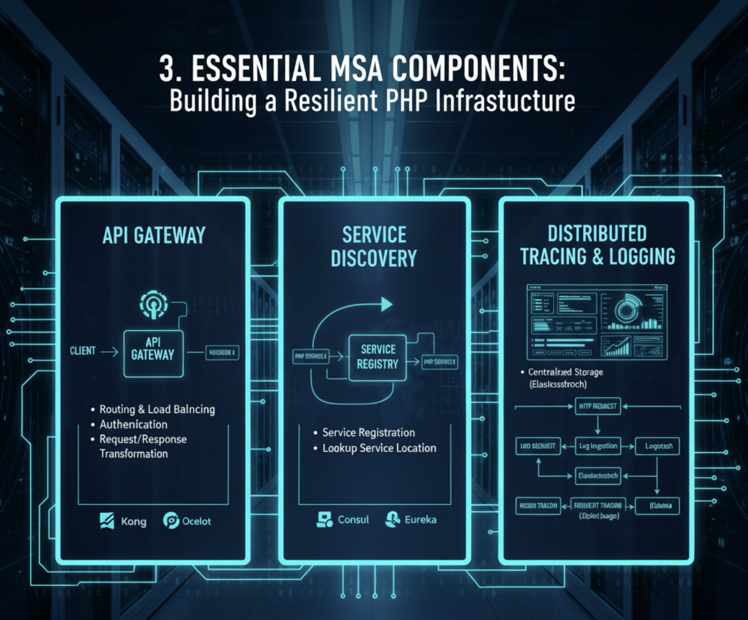 PHP 서비스를 MSA 환경에서 안정적으로 운영하기 위해 필요한 인프라 요소들입니다.