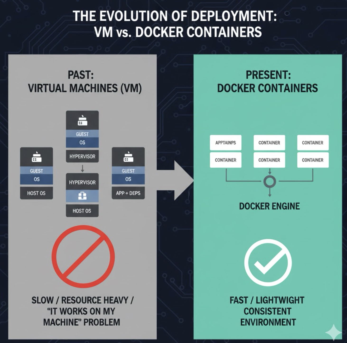 과거에는 개발, 테스트, 운영 환경을 일치시키기 어렵다는 고질적인 문제가 있었습니다. "내 컴퓨터에서는 잘 되는데, 서버에서는 안 돼요(It works on my machine)"라는 말이 개발자들 사이에서 흔했습니다.