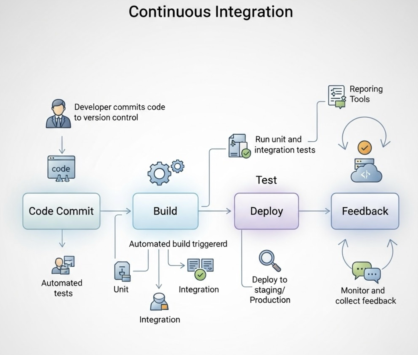 - deploy: 빌드된 #Docker이미지 를 컨테이너 레지스트리에 푸시하고, 최종 운영 서버에 배포 명령(SSH, Kubernetes 등)을 전송합니다