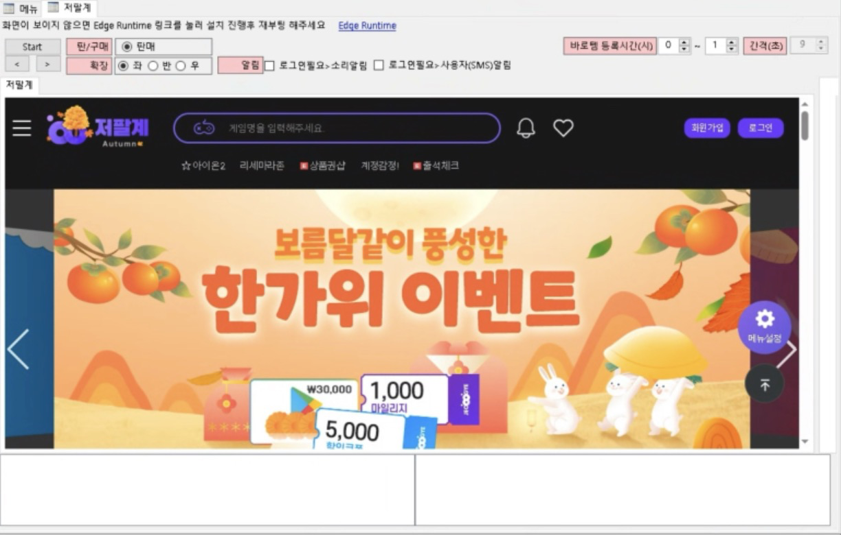 - 저팔계 등록시간(시) : 9~18 로 설정시 오전 9시부터 18시 까지 재등록을 진행하며