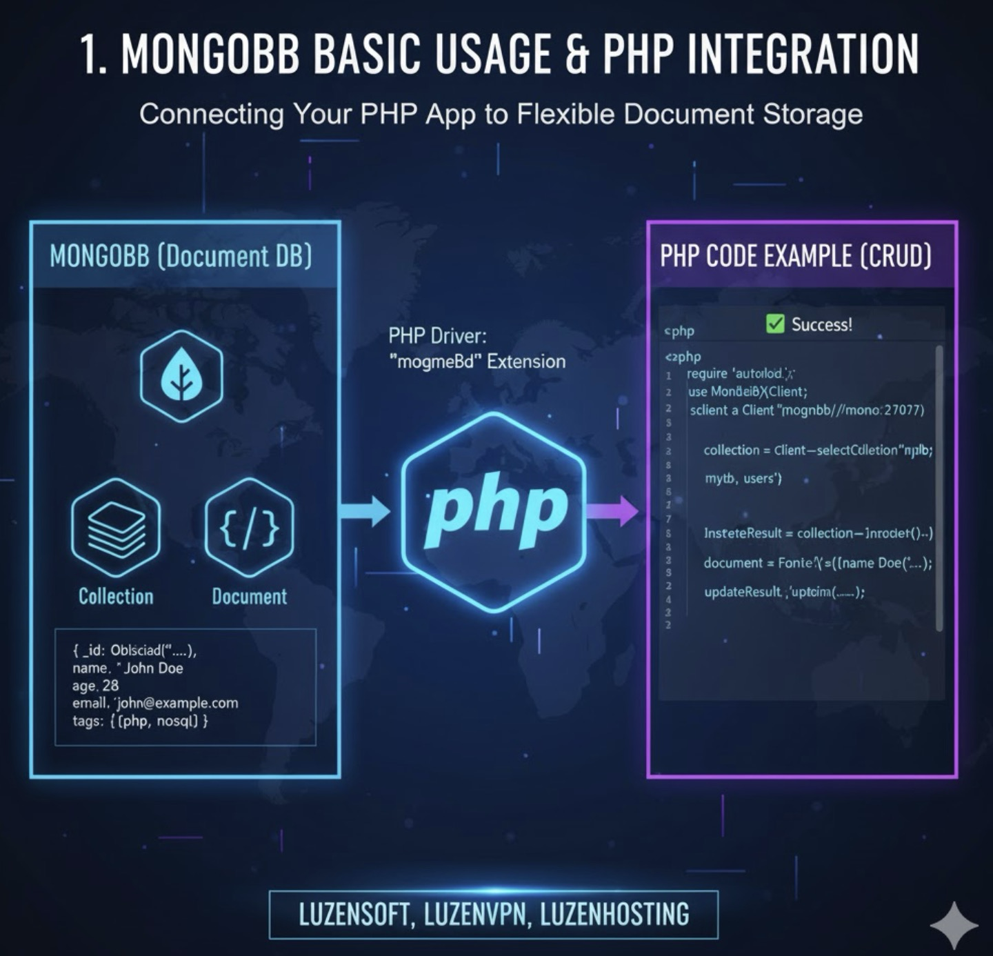 지난 시간에는 #NoSQL 데이터베이스의 필요성과 종류에 대해 알아보았습니다. 이번 시간에는 #PHP애플리케이션 에서 가장 많이 활용되는 두 가지 #NoSQL 데이터베이스, **MongoDB (문서형 DB)**와 **Redis (키-값 DB)**의 기본 사용법과 #PHP 에서의 연동 방법을 구체적으로 실습해 보겠습니다.