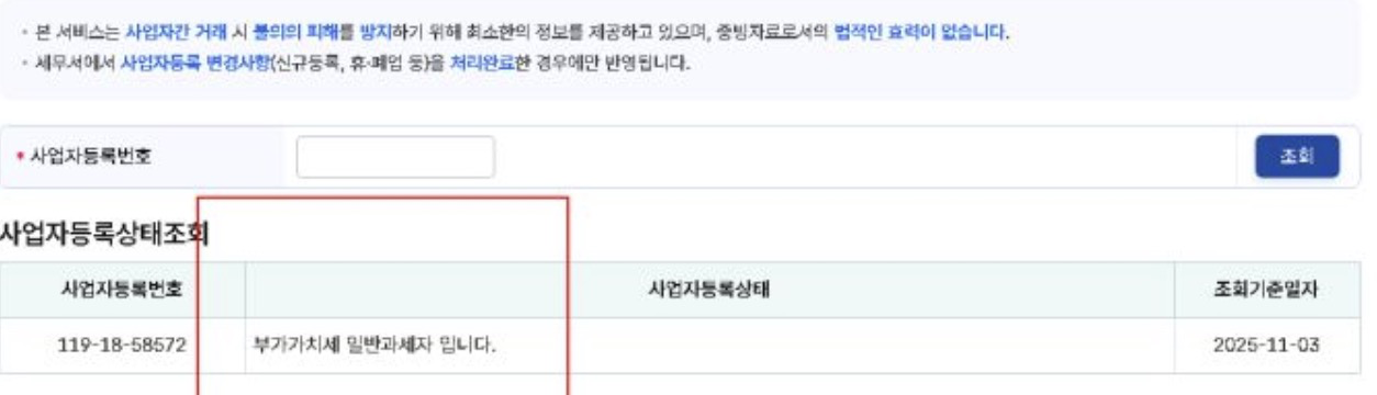 거래처의 상태를 확인하지 않고 발행한 세금계산서가 나중에 유효하지 않게 처리되면, 그 후속 작업이 더 번거로워집니다.
