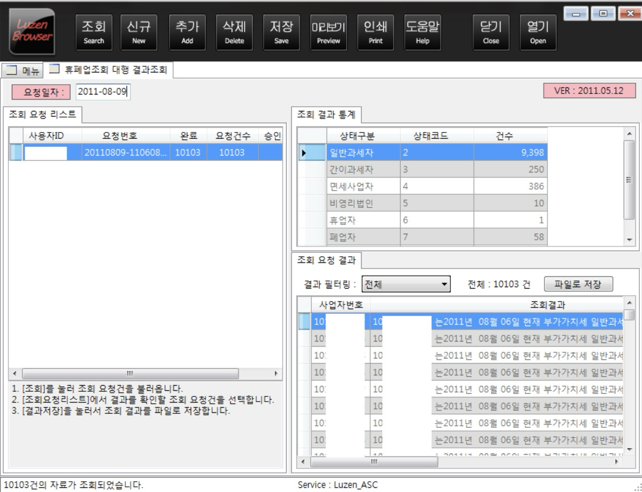 루젠소프트에서는 휴폐업조회를 대량으로 하는 서비스를 제공하고 있습니다.