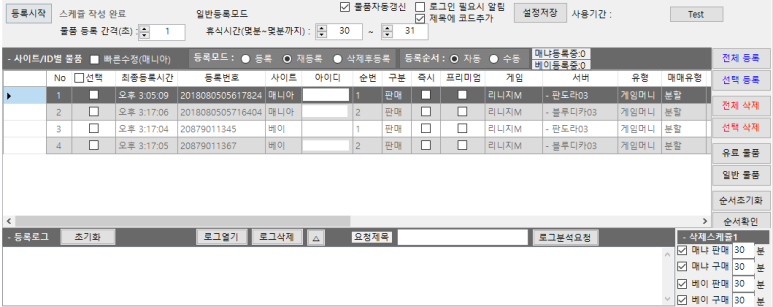 - 제목에 코드 추가 : 게임/서버별로 제목이 같은 물품을 등록 해야 할 경우 등록된 물품번호를 정확히 찾기 위한 코드를 제목뒤에 자동으로 추가해서 자동등록합니다.