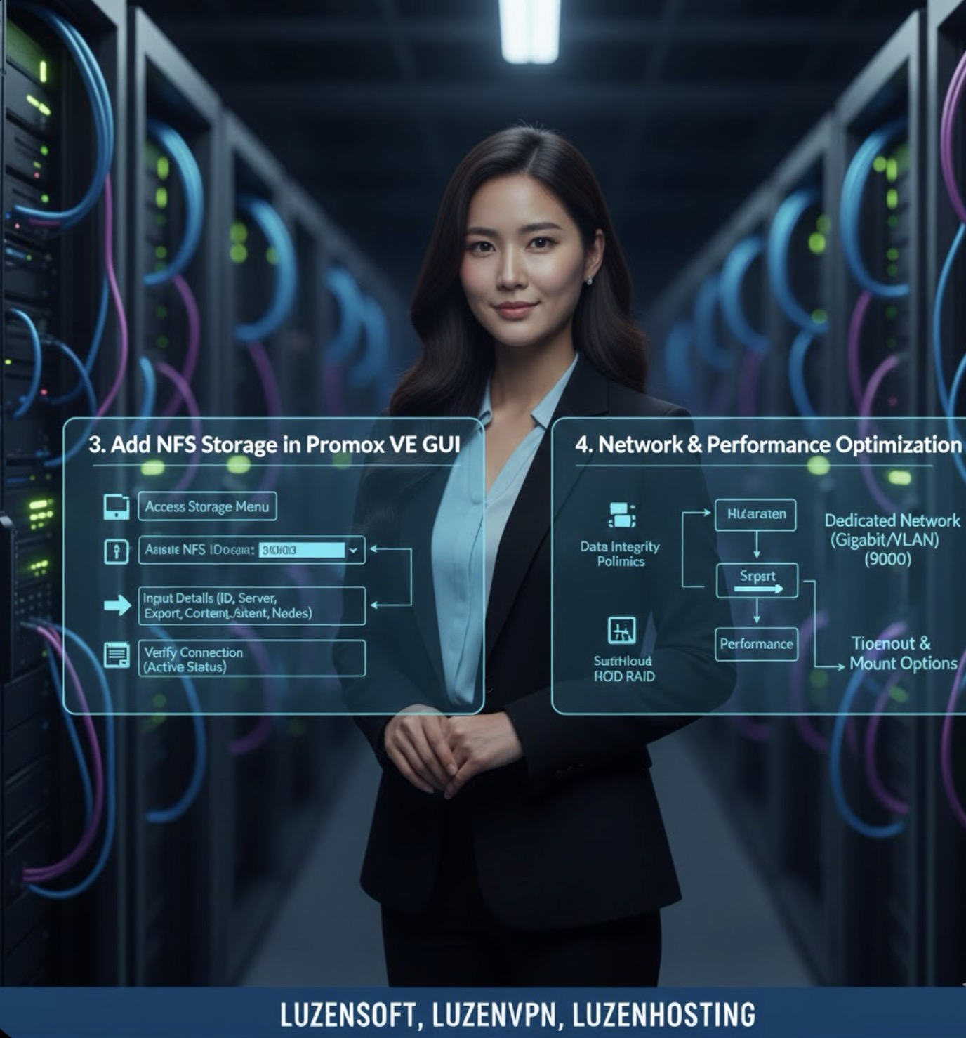 - 여러 대의 Proxmox 노드를 운영하는 클러스터 환경에서 모든 노드가 동일한 NFS 스토리지에 접근할 수 있습니다