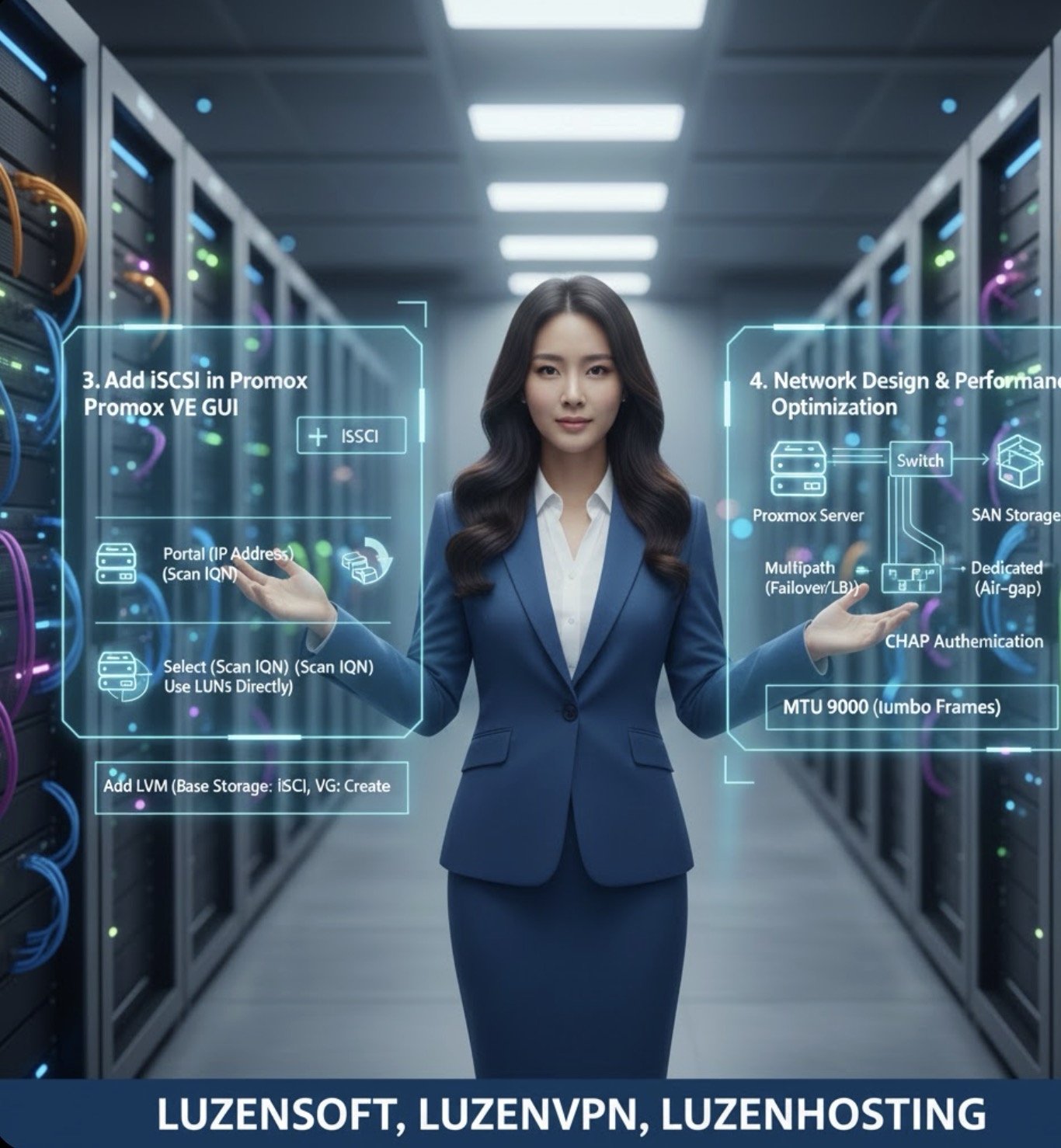 ProxmoxVE, iSCSI, SAN, 스토리지연결, LVM, 블록스토리지, 가상화성능, 멀티패스, 데이터센터, 자원관리