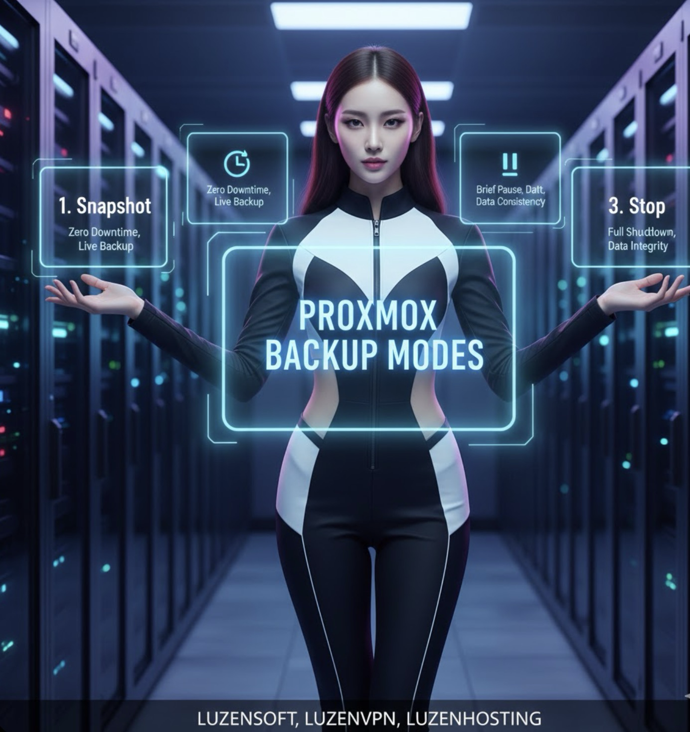 Proxmox VE는 관리자에게 Snapshot, Suspend, Stop이라는 세 가지 핵심 백업 모드를 제공합니다