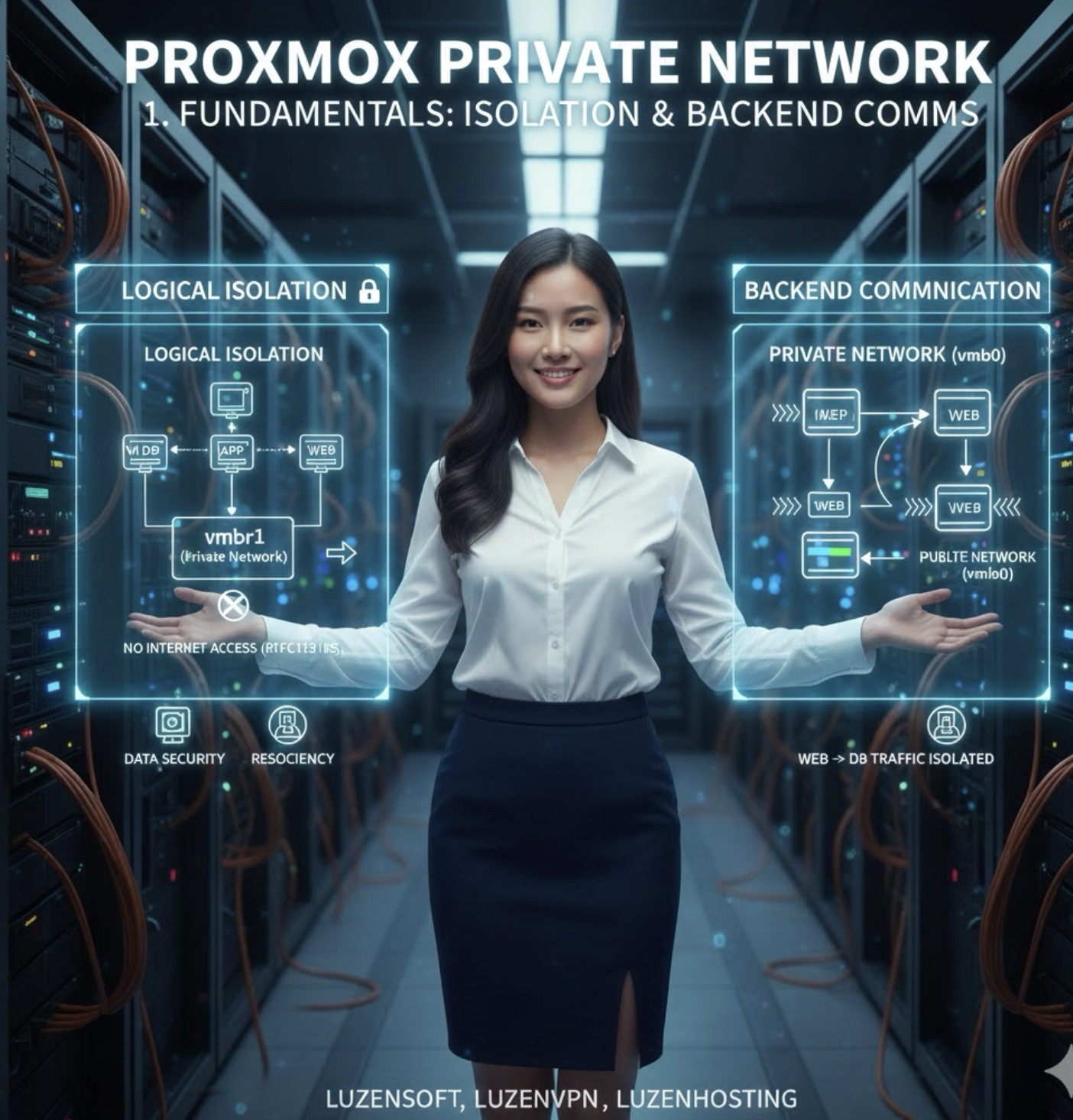 Proxmox VE에서는 이를 위해 '프라이빗 네트워크(Private Network)' 구성을 지원합니다