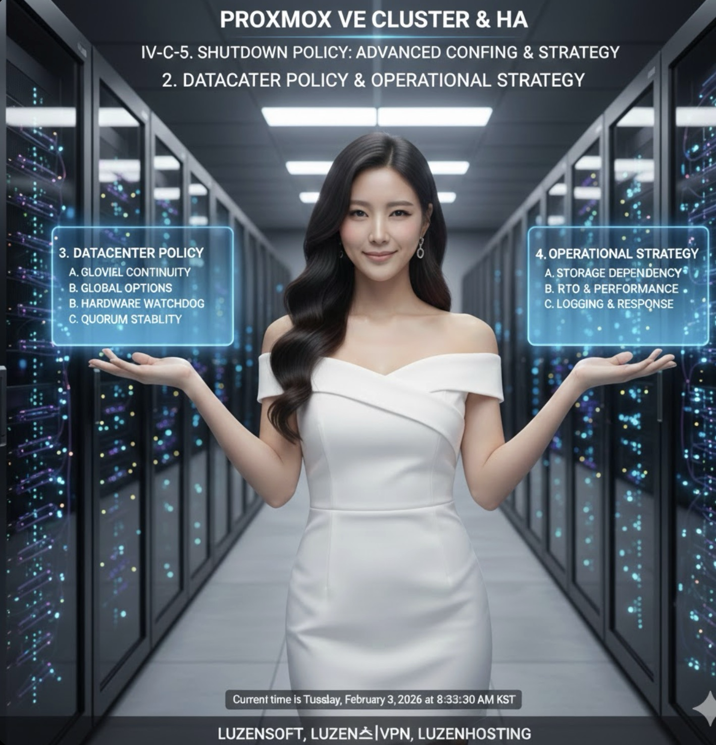 Proxmox VE의 Shutdown Policy는 클러스터 운영의 마지막 퍼즐 조각과 같습니다 단순히 종료 버튼을 누르는 것이 아니라, 시스템이 어떤 논리로 리소스를 보호할지 명확히 정의함으로써 진정한 고가용성을 완성할 수 있습니다 오늘 배운 내용을 여러분의 환경에 적용하여 더욱 견고한 가상화 시스템을 구축해 보시기 바랍니다 다음 시간에는 HA 클러스터의 마지막 관문인 'Fencing'과 'Watchdog'의 실전 구성에 대해 깊이 있게 학습하겠습니다